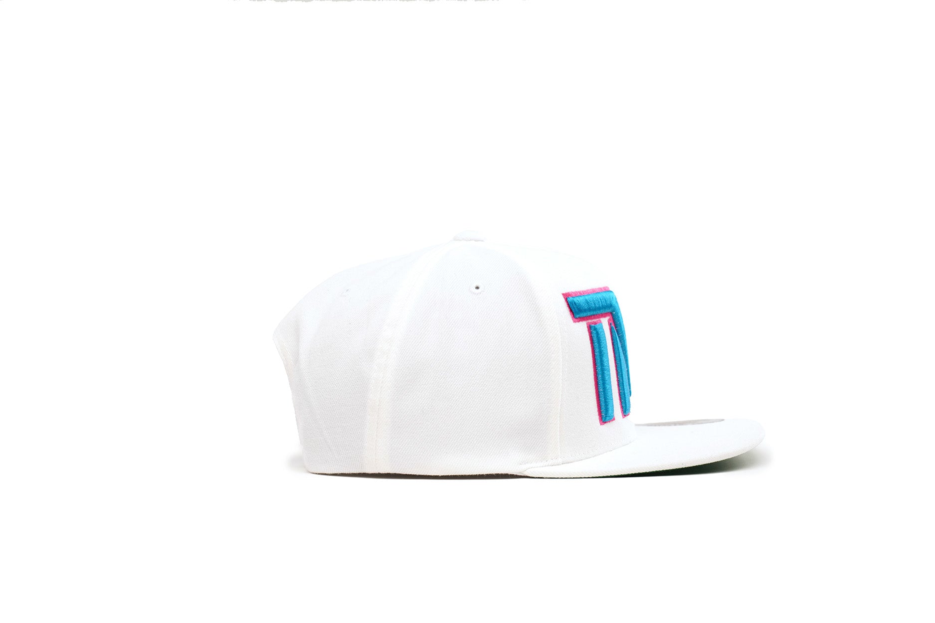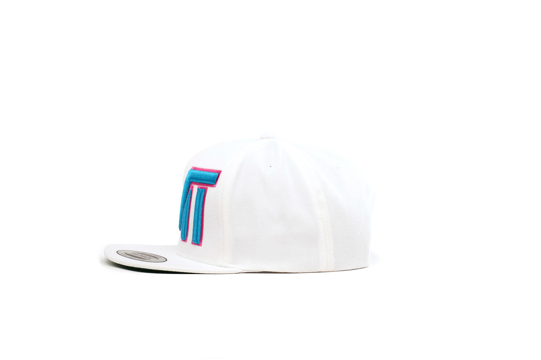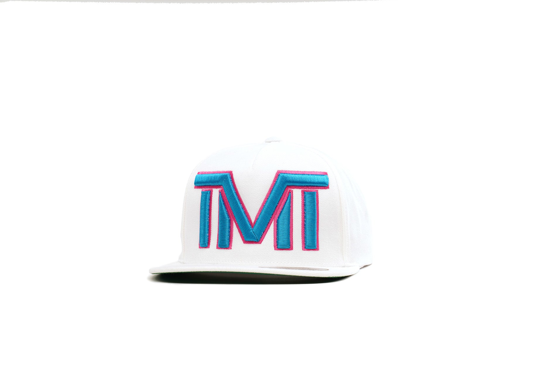 La gorra ESENCIAL es la gorra snapback de todos los días. Nuestro icónico "TMT" está bordado en un 3D limpio y lujoso en turquesa (azul) con un contorno cosido en magenta en la parte delantera.