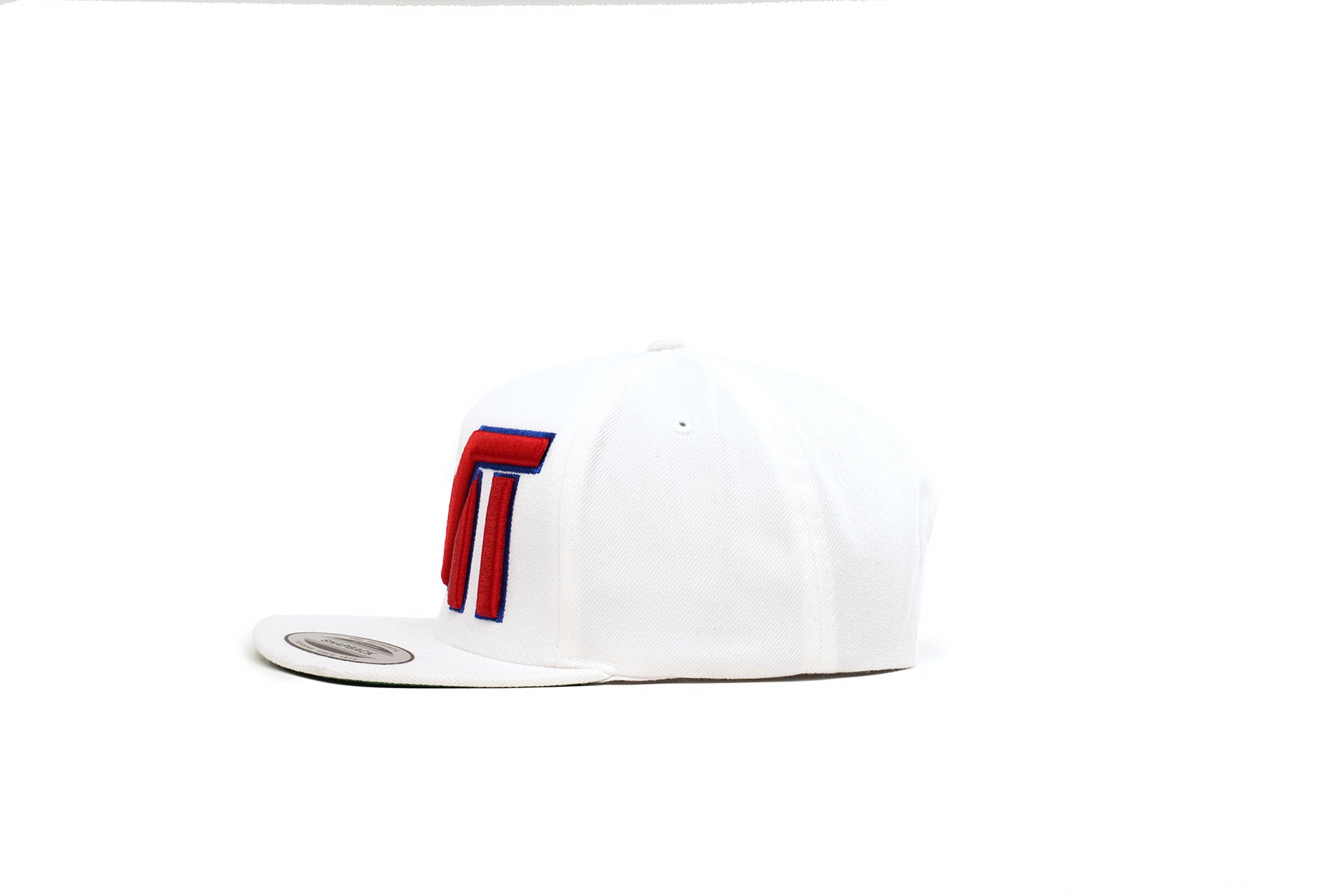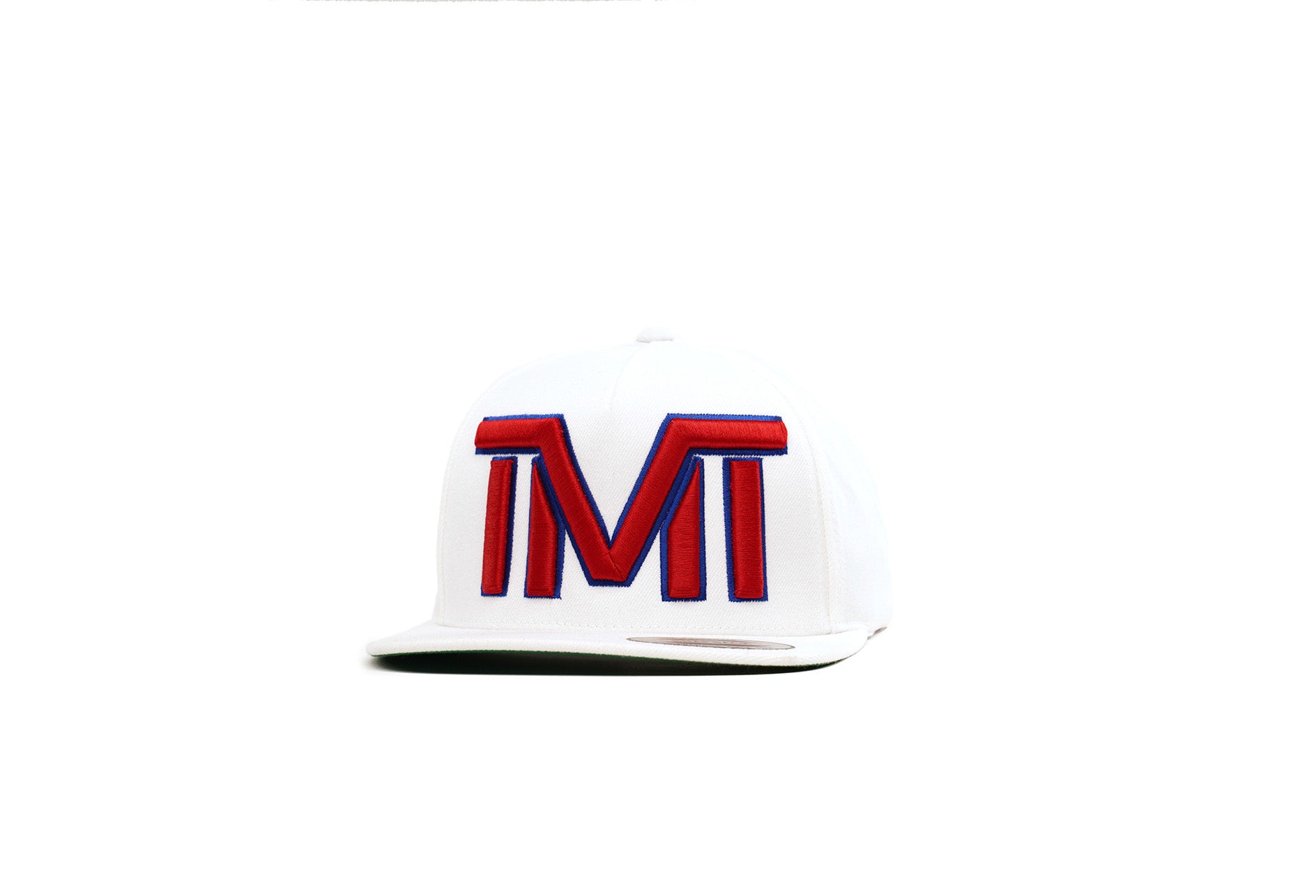 La gorra ESENCIAL es la gorra snapback de todos los días. Nuestro icónico "TMT" está bordado en un 3D limpio y lujoso en rojo con un contorno cosido en azul real en la parte delantera.