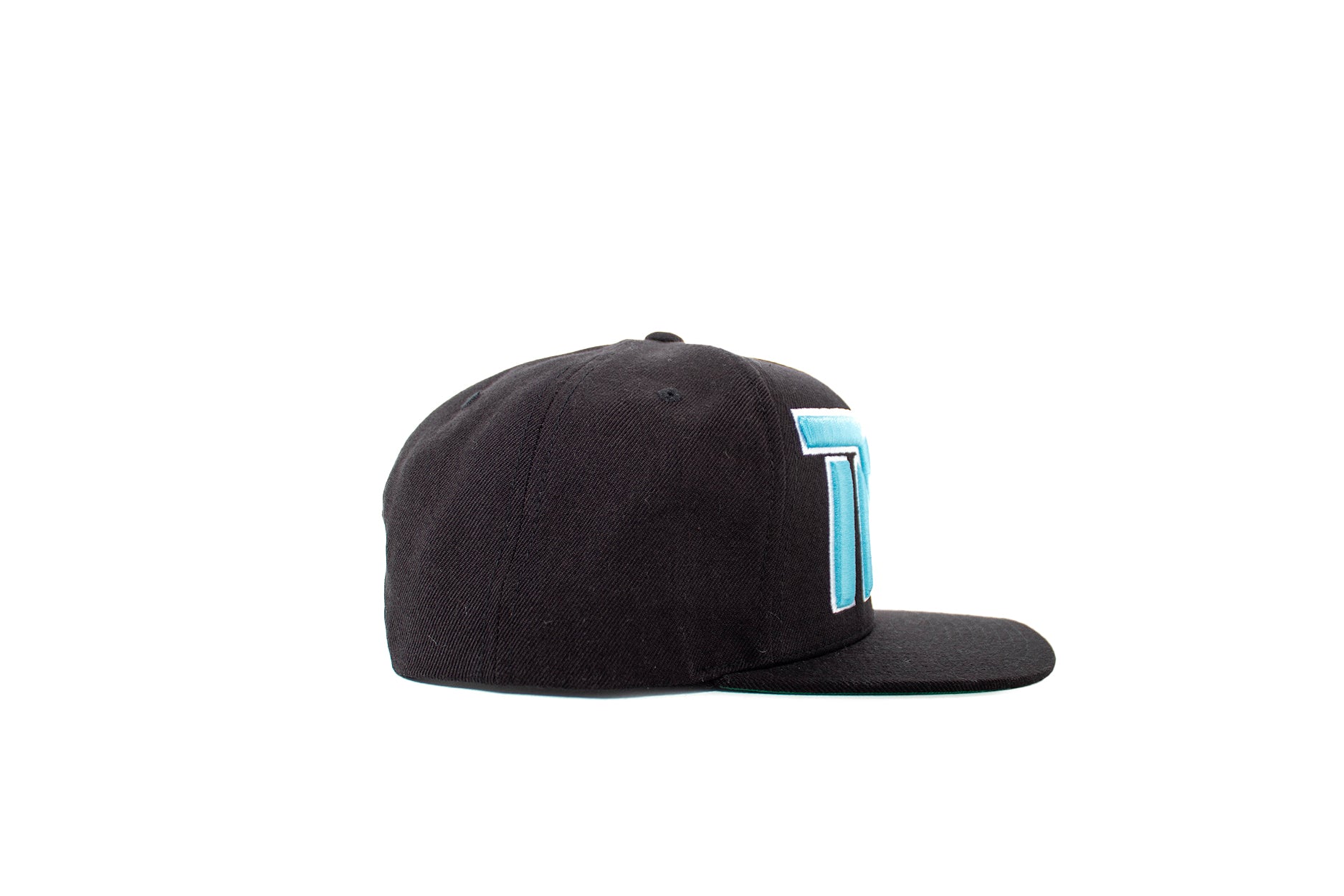 The ESSENTIAL headwear is the everyday snapback. Our iconic “TMT” is embroidered in a clean and luxurious 3D in turquoise (blue) with white stitched outline on the front side.